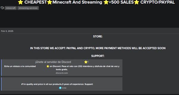 Eksperti GReAT tima kompanije Kaspersky su takođe analizirali darknet tržište i zatvorene platforme za oglase za prodaju kompromitovanih gejmerskih naloga i skinova. Istraživanje pokazuje da se sve veći broj takvih ponuda pojavljuje ne samo na darknetu, već i na običnim zatvorenim forumima i Telegram kanalima, što ove nezakonite resurse čini vidljivijim i pristupačnijim nego ikada ranije.